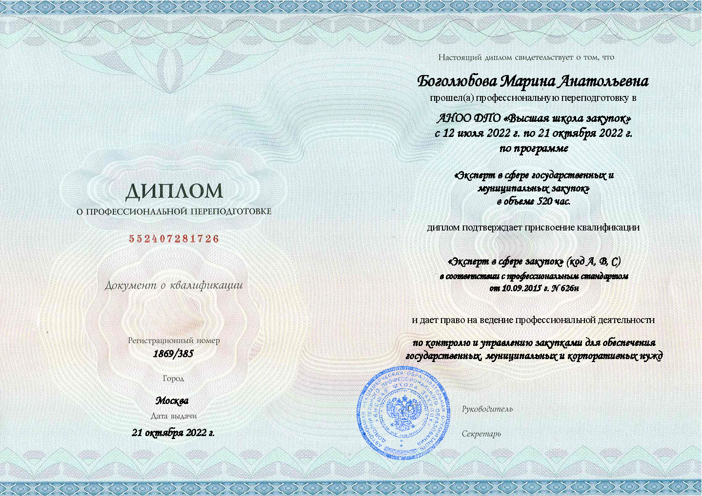 Профессиональная переподготовка «Специалист в сфере закупок» в Самарской школе закупок производится по двум законам — 44-ФЗ и 223-ФЗ с выдачей диплома установленного «государственного» образца. Образец диплома о профессиональной переподготовке